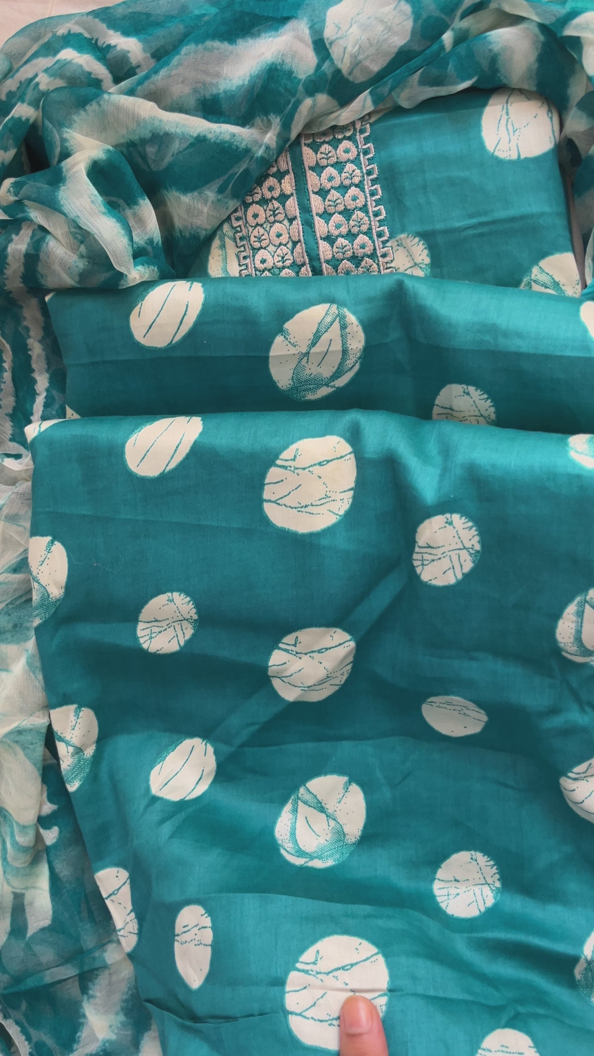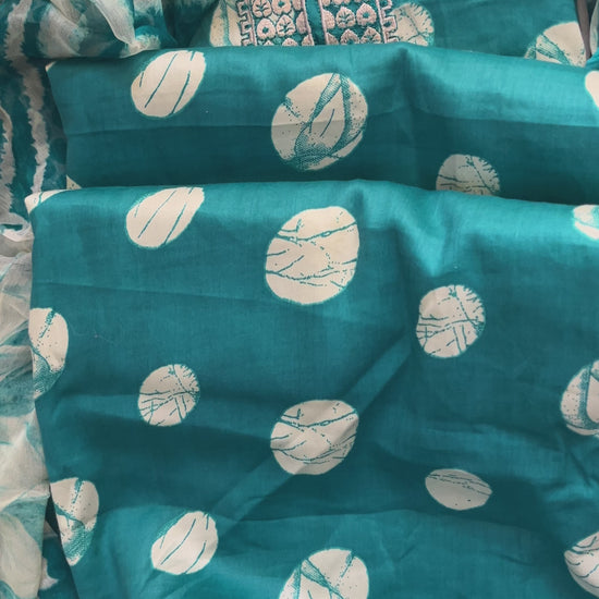 Blue Cotton Polka Print Suit with Neck Patti & Digital Chiffon Dupatta