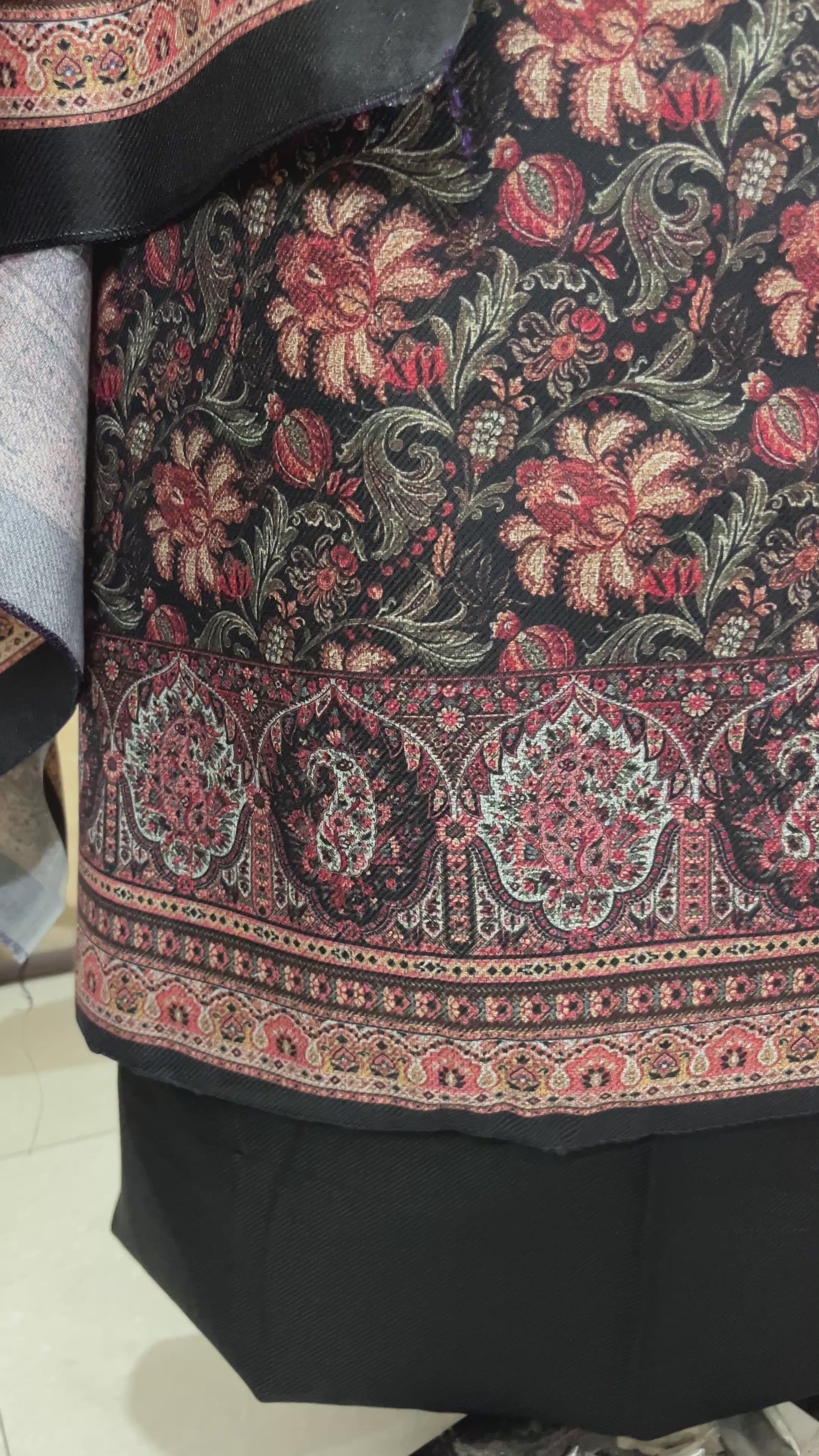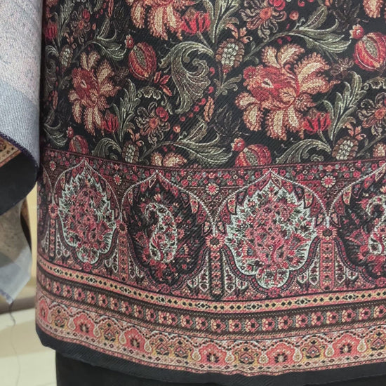 This Black Woolen Suit is a perfect blend of tradition and winter elegance. Made from fine toosh pashmina fabric, it offers warmth, comfort, and a rich look for the chilly season. The all-over floral print adds a graceful charm, while the digitally designed Kullvi patti on the neckline and hemline gives it a beautiful ethnic touch.