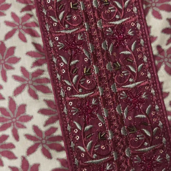 Features a detachable hand embroidered neck patch and hemline patti, allowing easy size adjustment and styling flexibility.