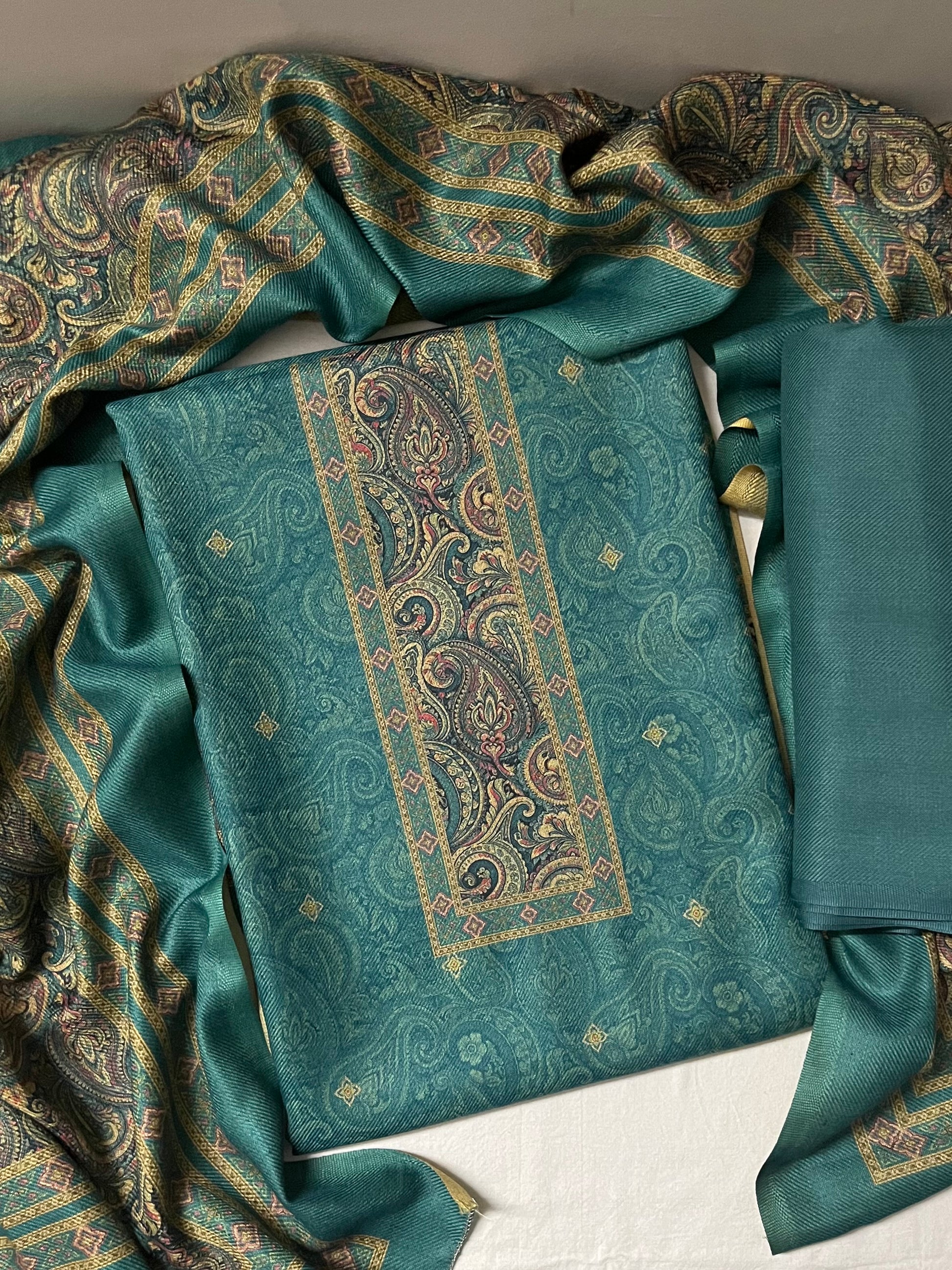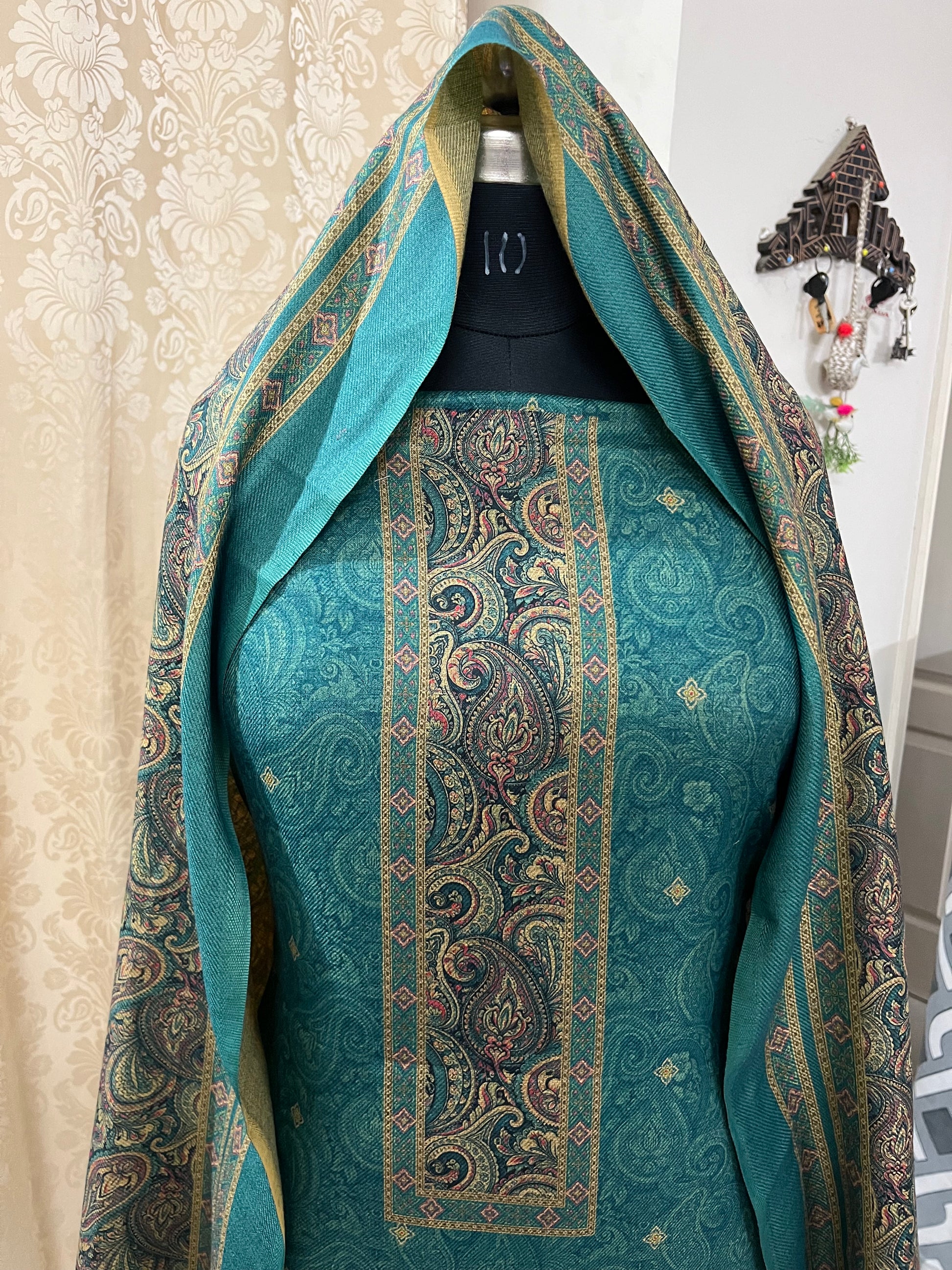 Nazaakat Toosh Pashmina Suit with Matching Stole- Firozi