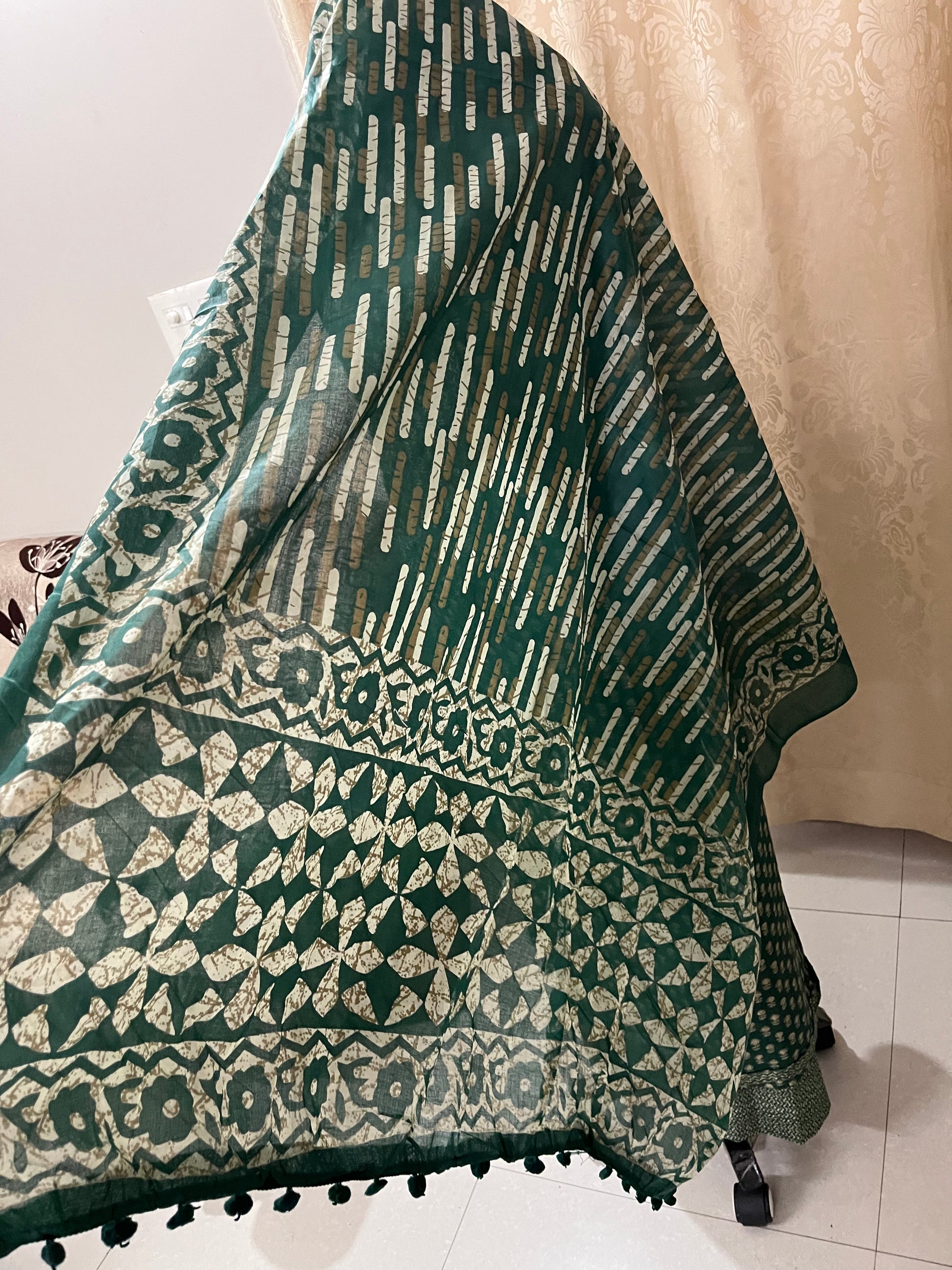 Comes with a printed cotton bottom and lightweight cotton dupatta with pom-pom lace — perfect for comfortable everyday summer wear.