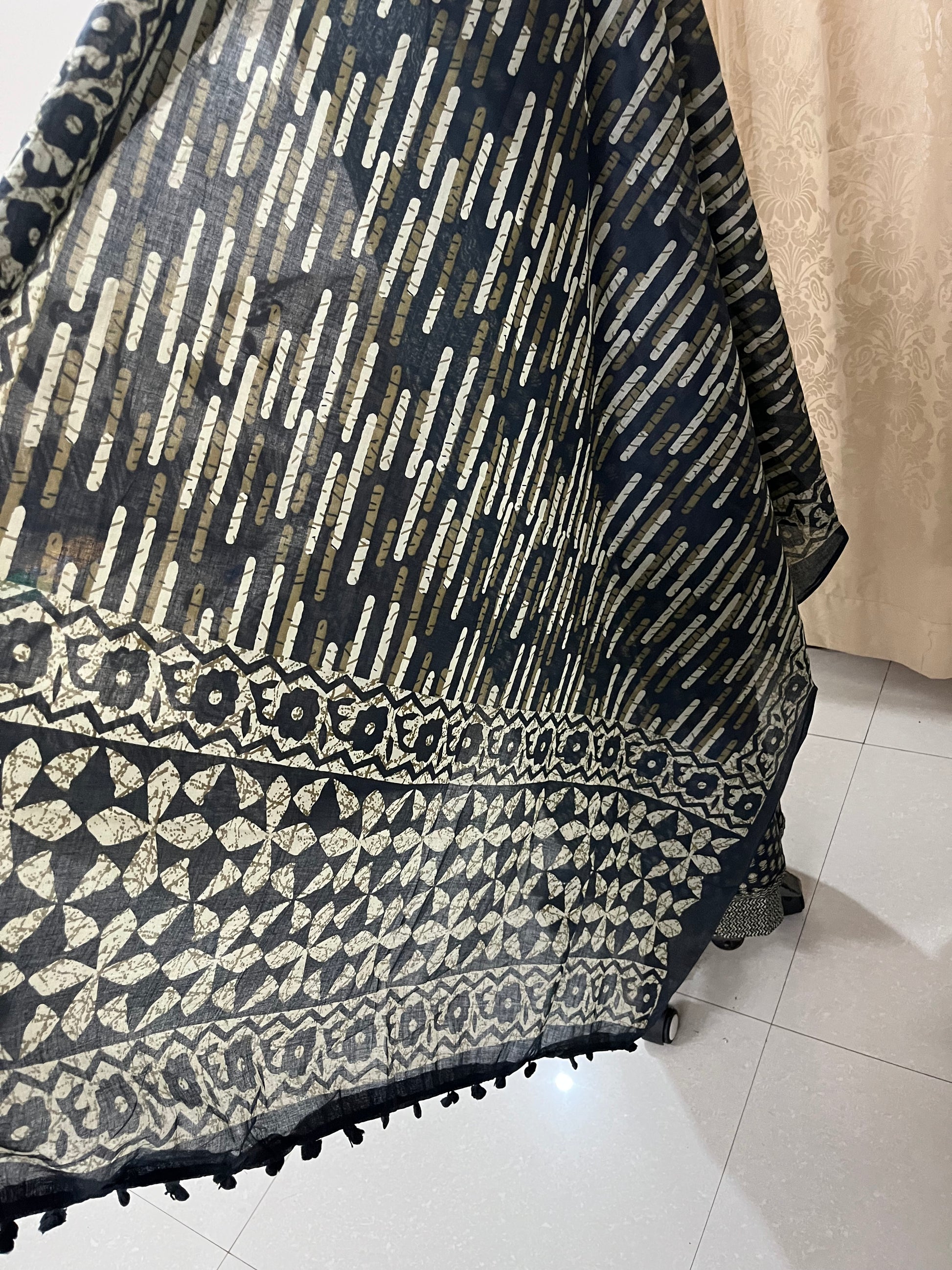 Comes with a printed cotton bottom and lightweight cotton dupatta with pom-pom lace — perfect for comfortable everyday summer wear.