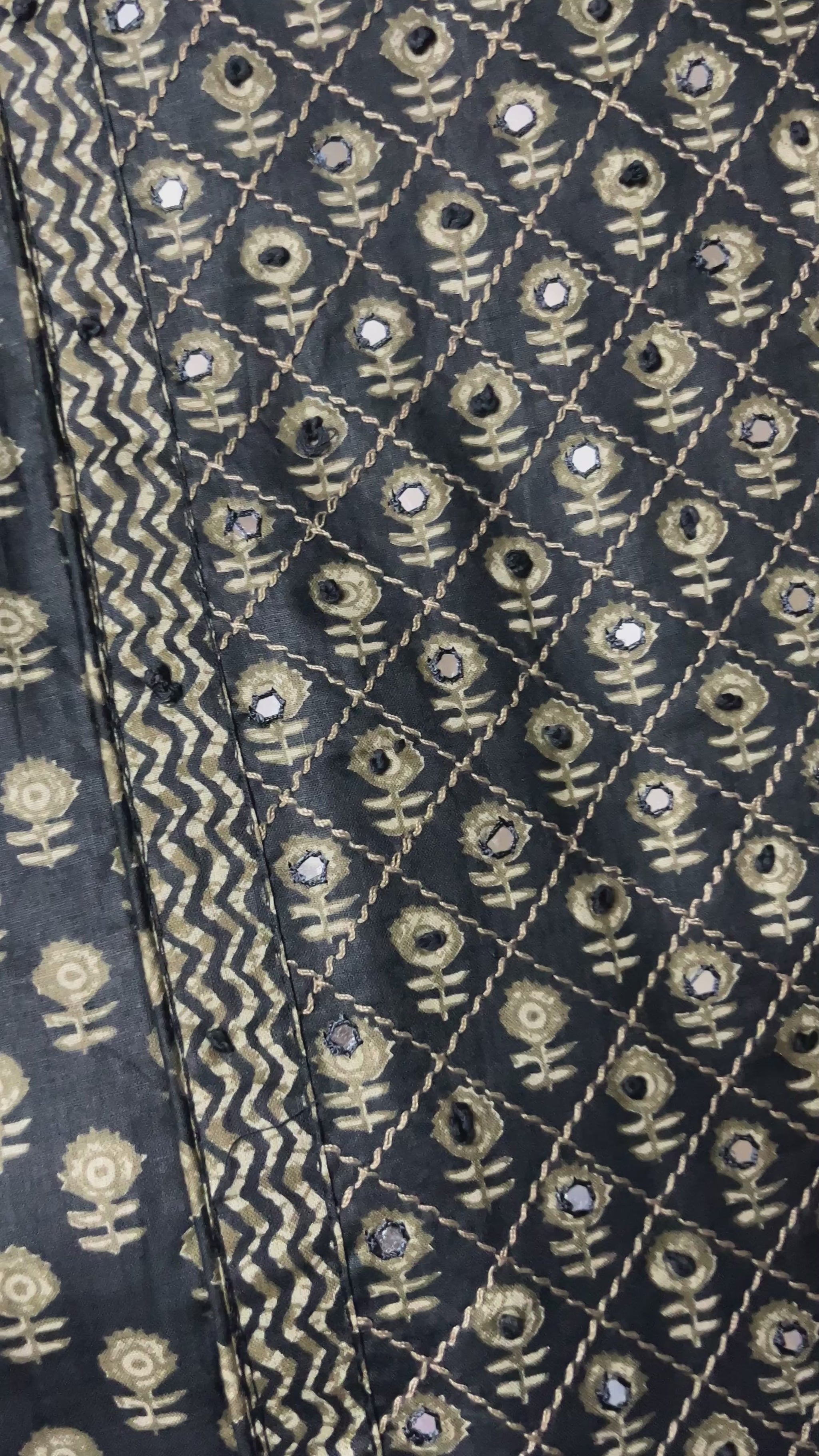 Features a detachable embroidered neck patch woth knot & mirror work and hemline patti, allowing easy size adjustment and styling flexibility.