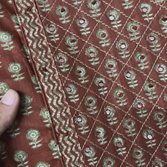 Paalki Pure Cotton Suit Set with Knot & Mirror Work Neck Patch - Rust