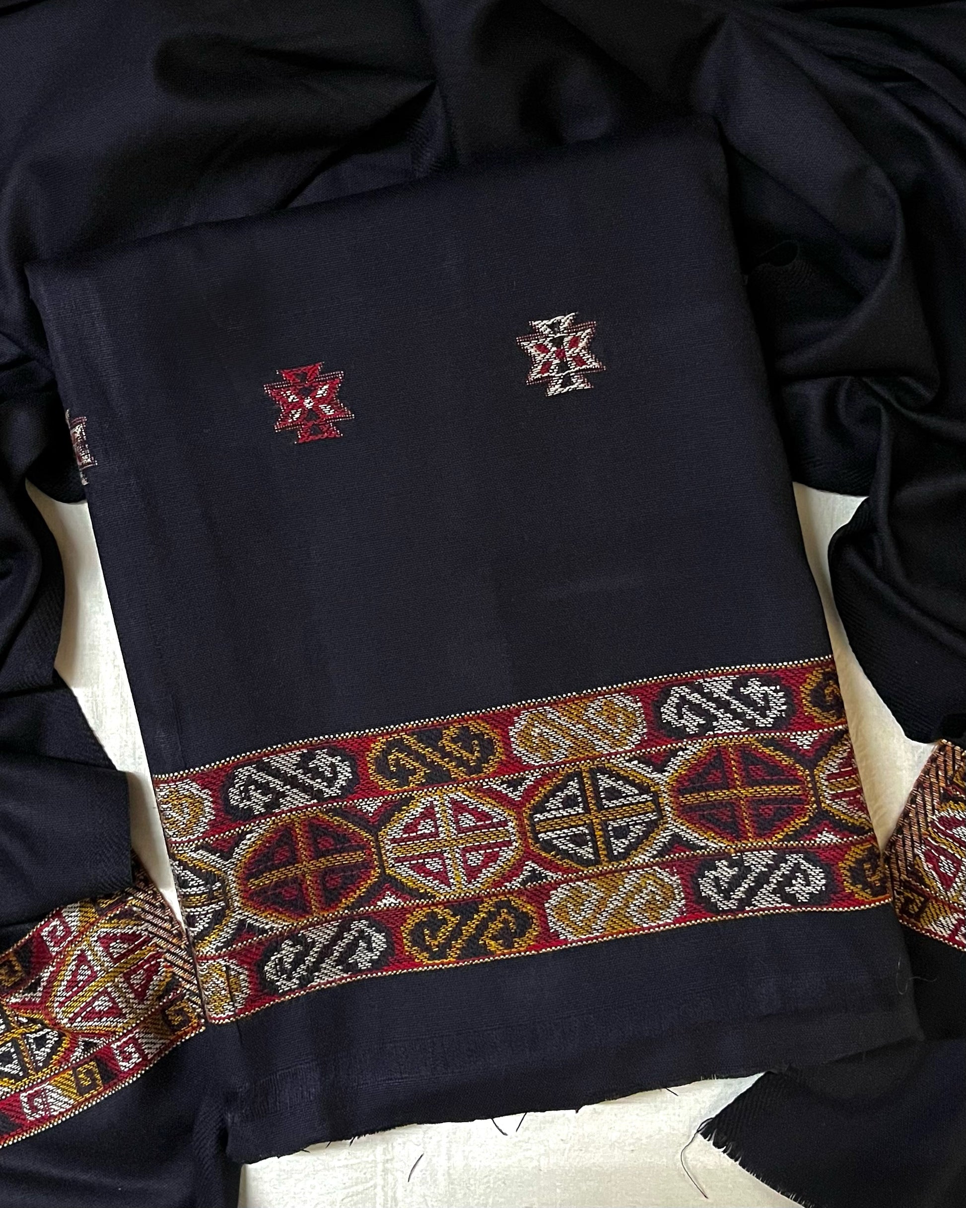 Pahadi Kullvi Soft Woolen Suit with Matching Stole - Black
