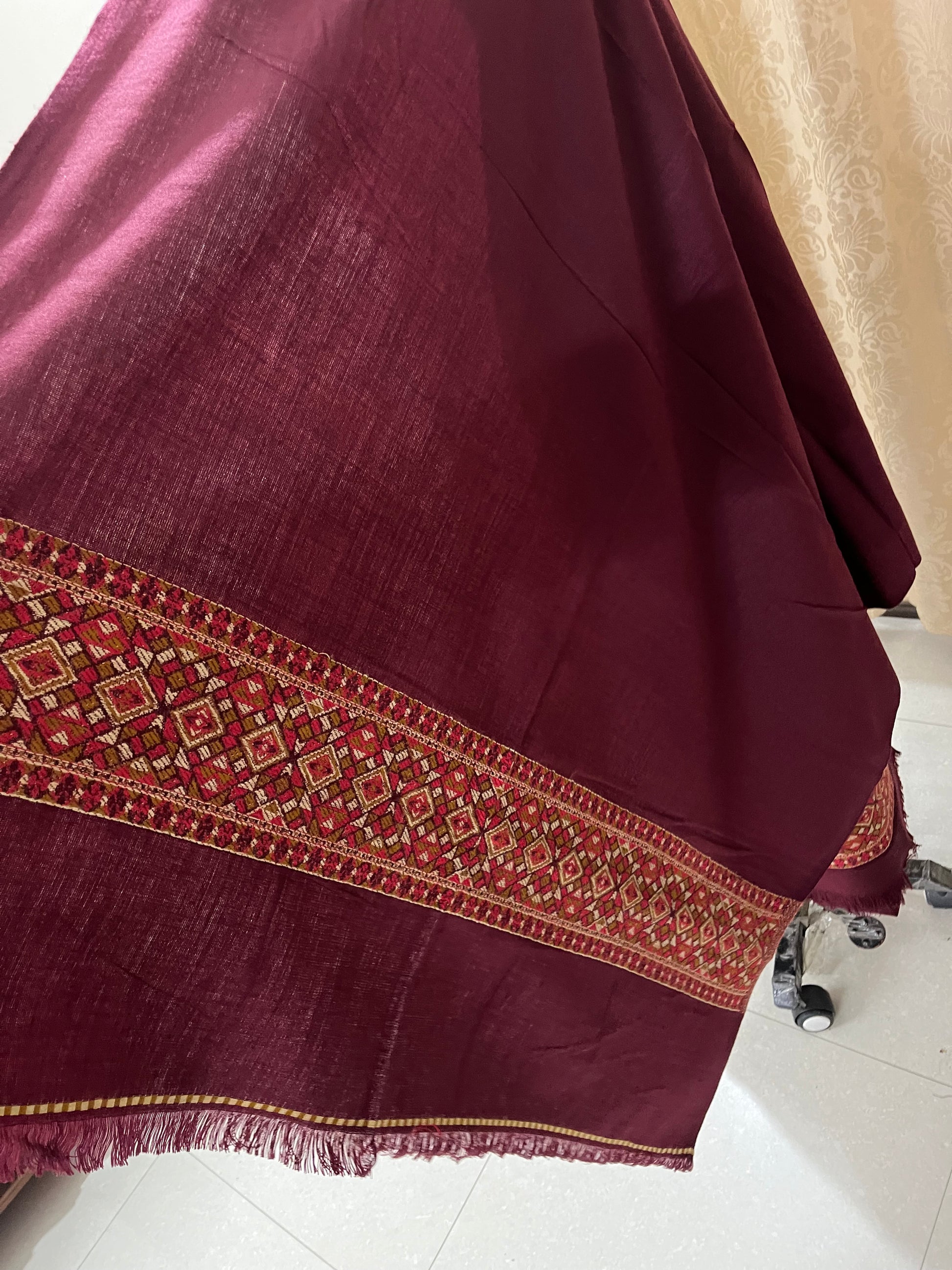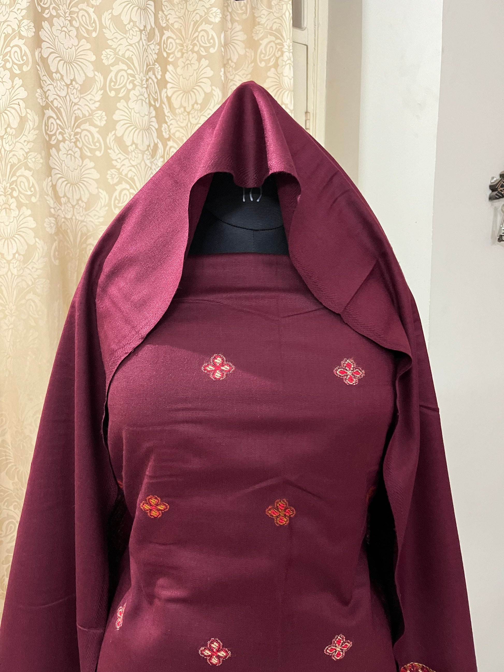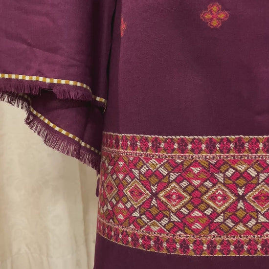 Pahadi Kullvi Soft Woolen Suit with Matching Stole - Maroon