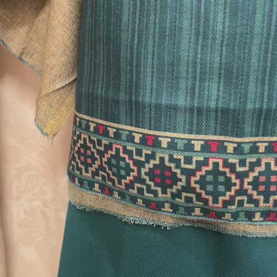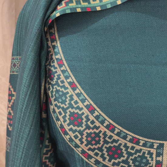 Pashmina Kullvi Digitally Printed Woolen Suit & Stole - Green