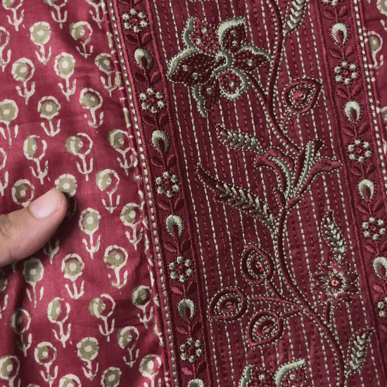 Roop Pure Cotton Suit Set with Embroidered Neck Patch - Brick Red