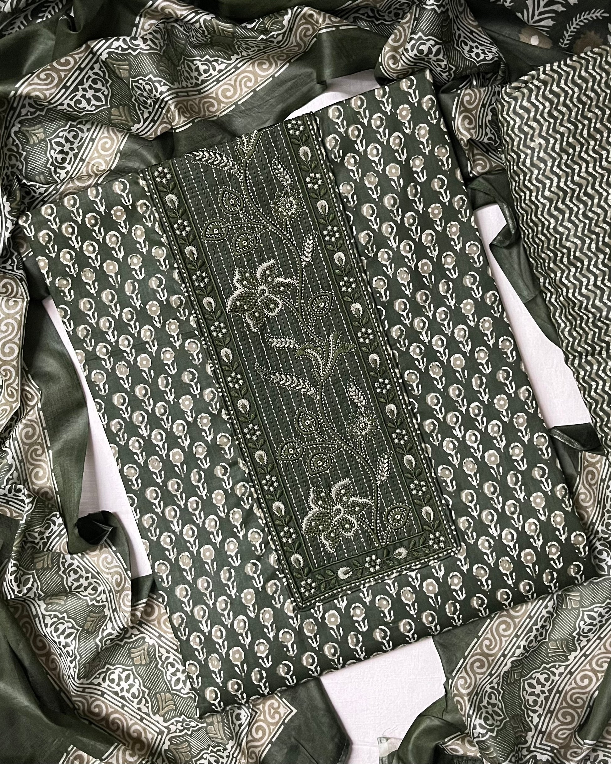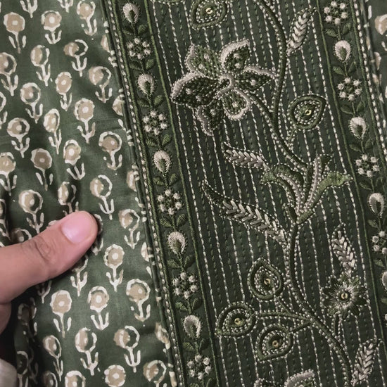 Roop Pure Cotton Suit Set with Embroidered Neck Patch - Mehndi Green