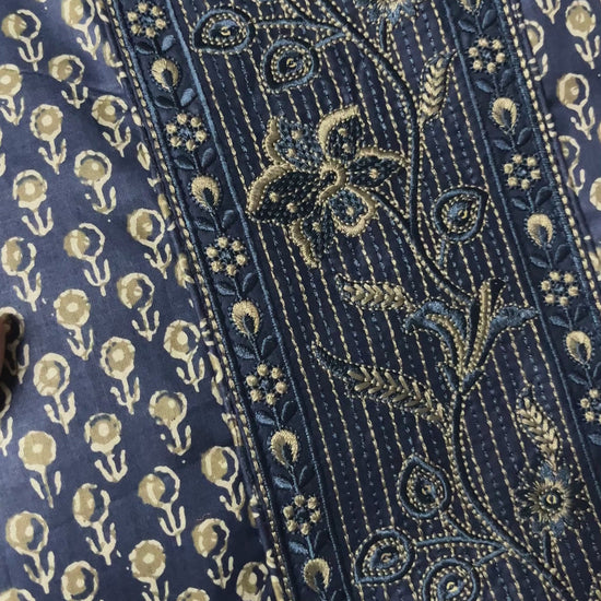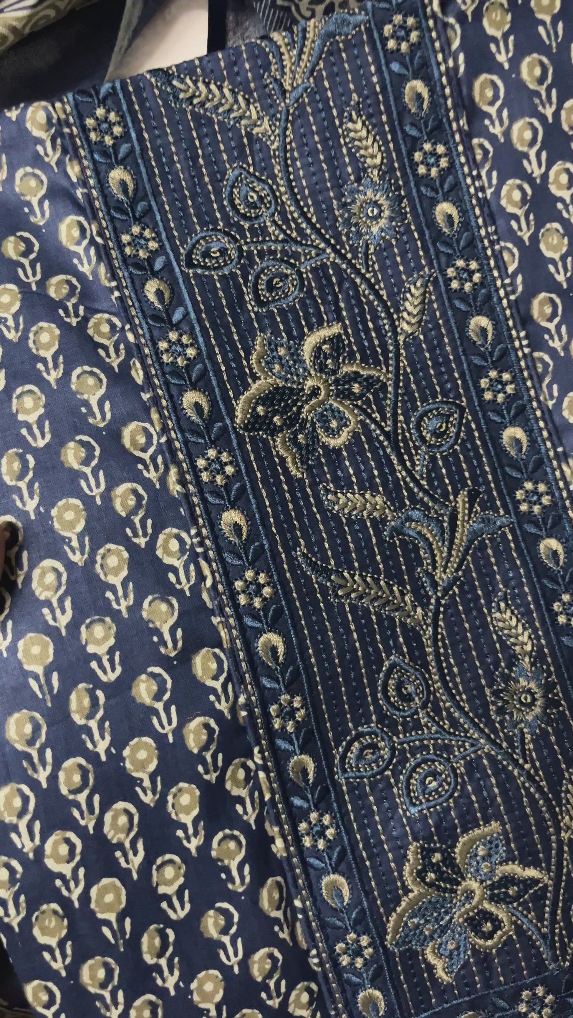 Roop Pure Cotton Suit Set with Embroidered Neck Patch - Navy Blue