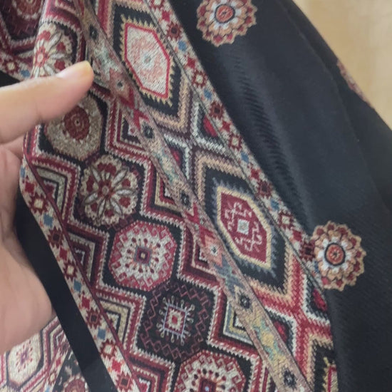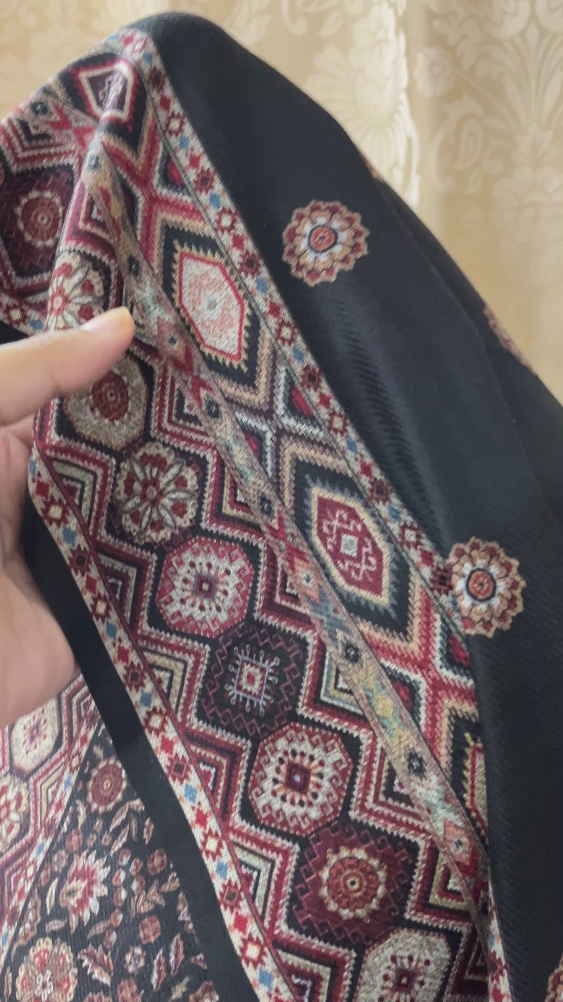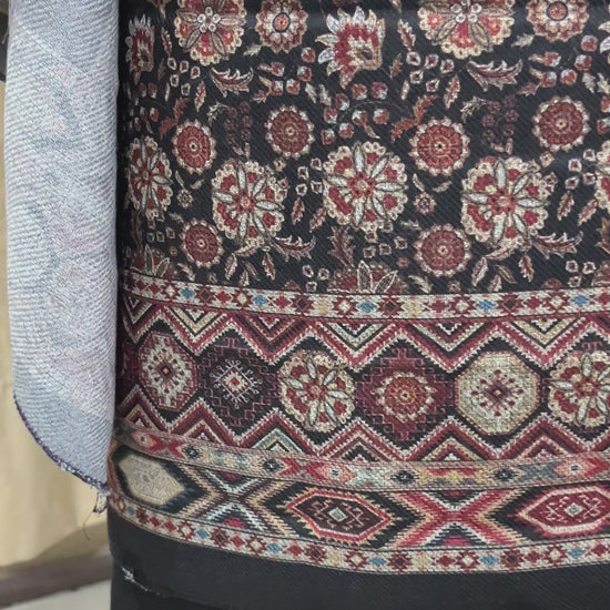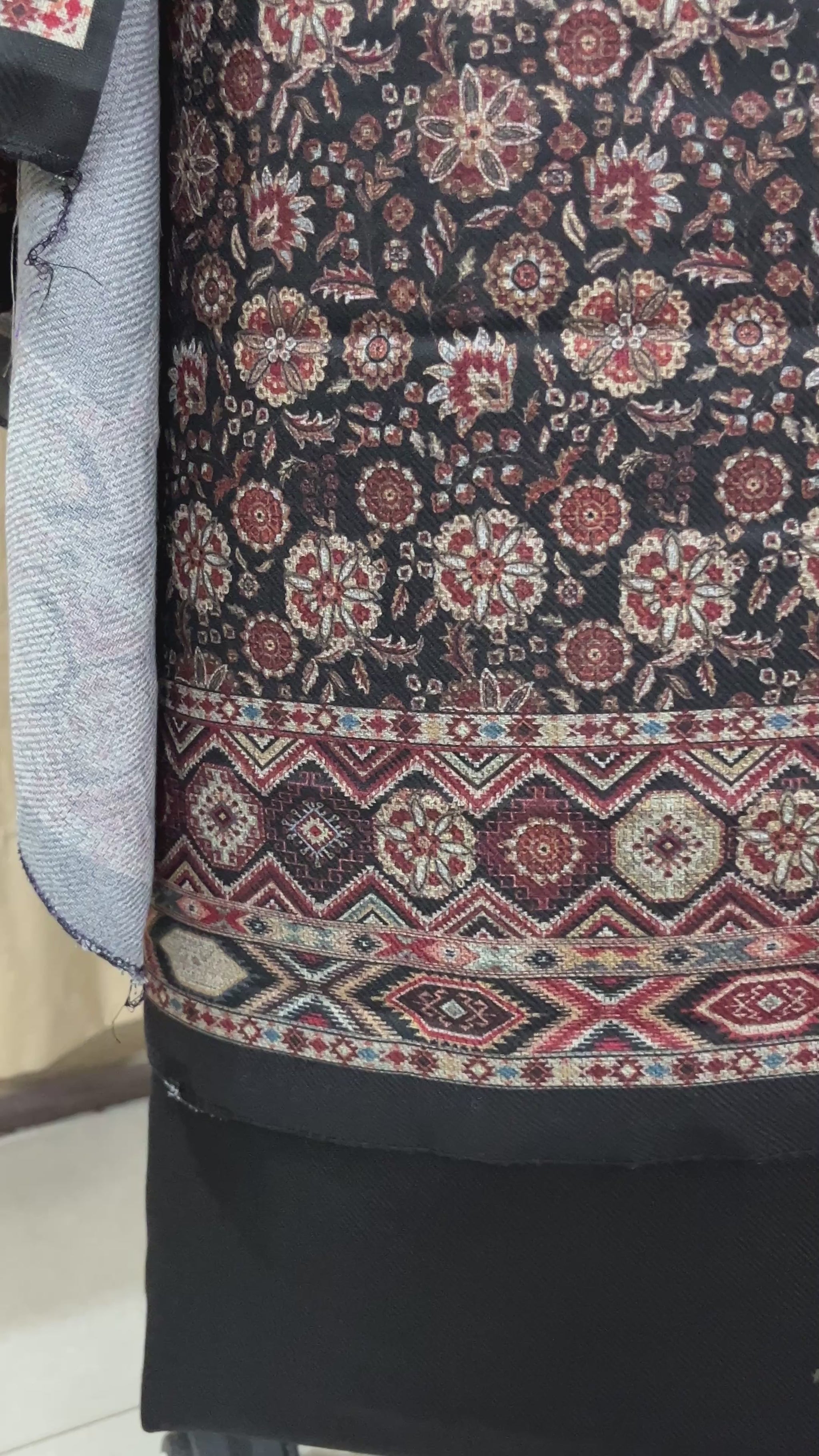 This Black Woolen Suit is a perfect blend of tradition and winter elegance. Made from fine toosh pashmina fabric, it offers warmth, comfort, and a rich look for the chilly season. The all-over floral print adds a graceful charm, while the digitally designed Kullvi patti on the neckline and hemline gives it a beautiful ethnic touch.