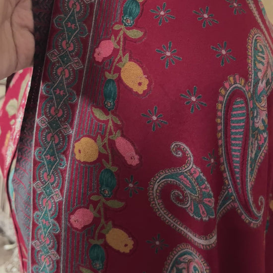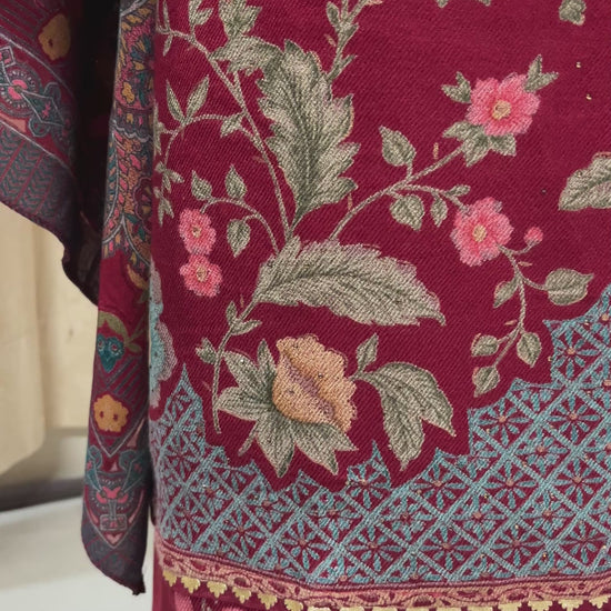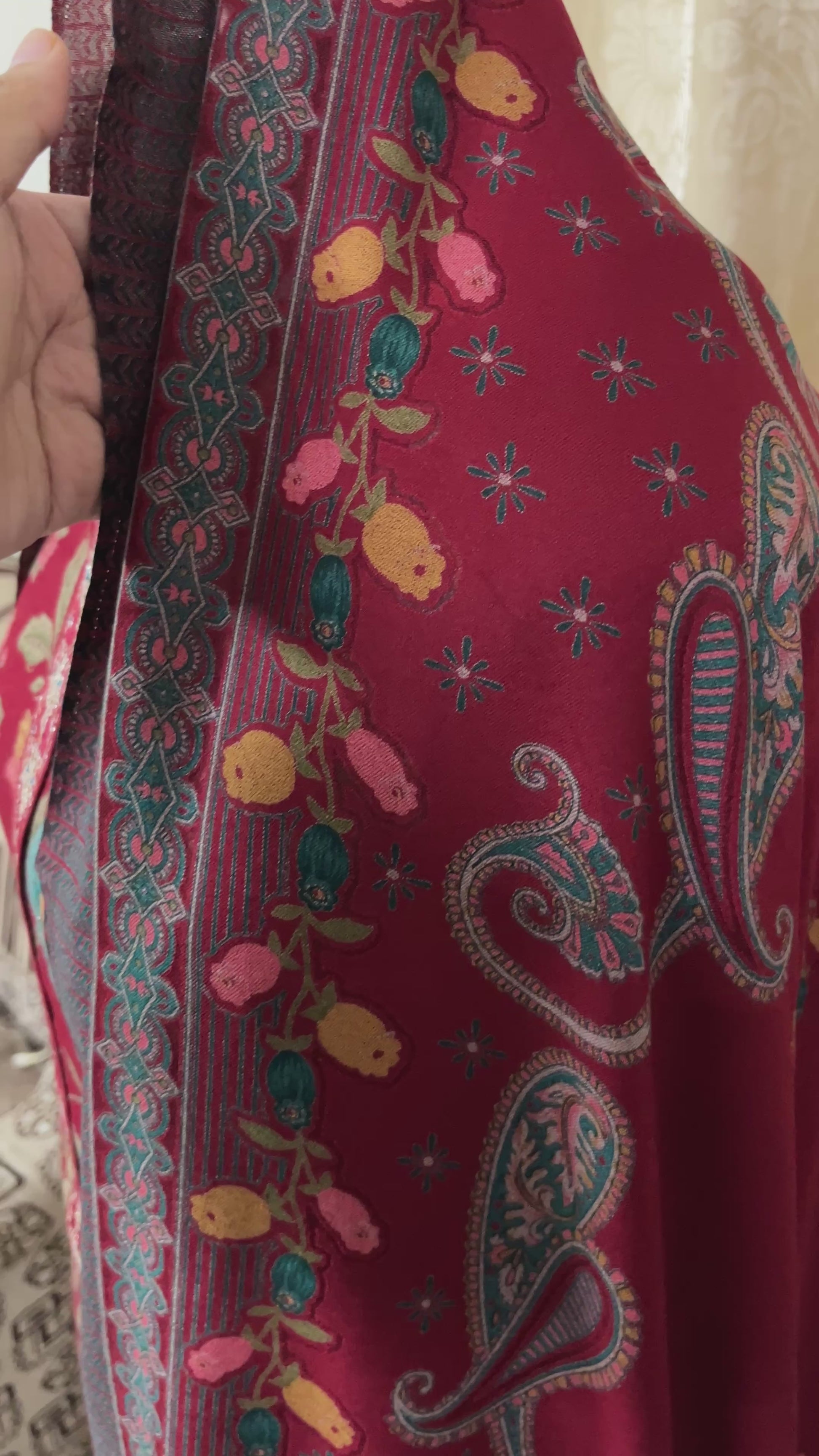 Sindoori Red Pure Spun Woolen Suit with Matching Stole
