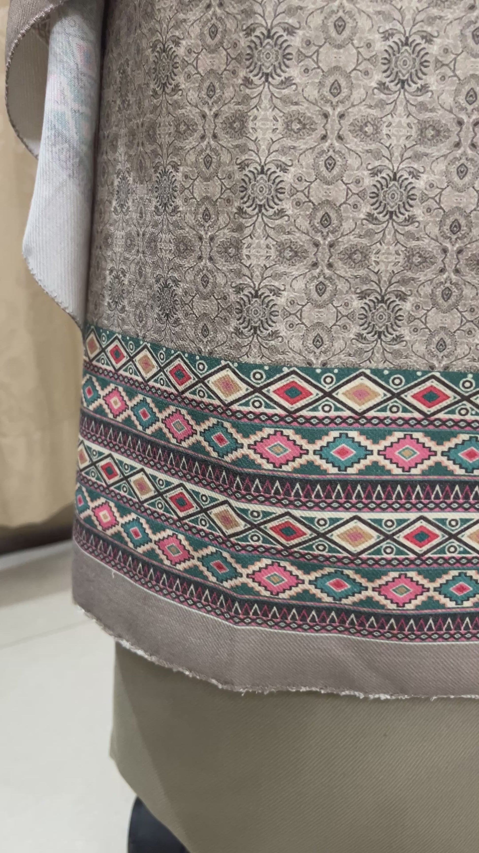 This set includes a comfortable, plain matching stone grey bottom and a complementary stole. It’s the perfect blend of traditional elegance and modern detail, ideal for sophisticated styling in any season.