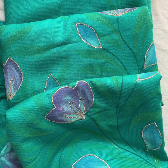 Teal Blue Woolen Hand-Painted Suit with Matching Stole