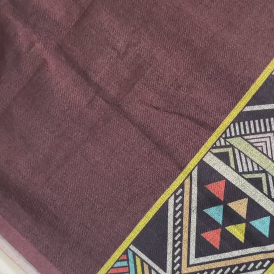 It comes with a matching stole that completes the coordinated look perfectly. The plain coffee brown bottom balances the printed top, creating a graceful outfit that’s both stylish and comfortable for the season.