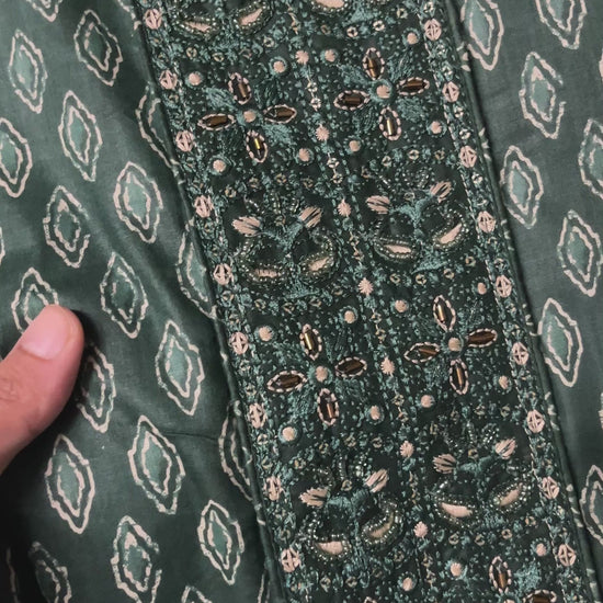 Zevar Pure 100% Cotton Suit Set with Hand Embroidered Neck Patch -Bottle Green